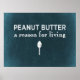 Manteiga de amendoim, uma razão para viver. Se você é uma aberração de manteiga de amendoim então saberá como é verdade essa design engraçada de comida. Quadro azul com colher e texto em relevo.