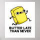 Manteiga Atrasada Do Que Nunca Engraçado O trocadilho de Comida apresenta uma bonita fatia de manteiga atrasada. Presente perfeito para a família e amigos que adoram trocadilhos de manteiga de comida fofa.