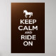 Mantenha-se calmo e acompanhe o produto com texto branco e fundo escuro. Uma variação de manter calma e continuar