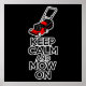 Cuidados de grama Humor com o meme da Internet "mantenha calma". Cortador de grama e slogan "Mantenha a calma e a mãe ligada"