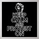 Protesto Humor com o meme da Internet "Fique Calmo". Símbolo de protesto o punho elevado e o slogan "Mantenha calma e protesto ligado"