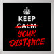Um slogan de distanciamento social que é uma reviravolta divertida em 'Manter Calmo e Continuar' ... Mantenha sua distância é um lembrete não tão sutil para manter todos seguros.