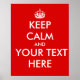 Mantenha a calma dizendo com esta modelo personalizável. Tem o logotipo da coroa calma. Diz "Mantenha Calma" e "Seu Texto". Adicione suas próprias palavras na modelo para personalizar. Você pode alterar o estilo ou a cor da fonte para personalizar. Ou adicione uma cor de fundo diferente. Mostre sua própria personalidade ou interesse. Você pode fazer uma design para qualquer ocasião. Isso faz um presente maravilhoso para aquela pessoa que você não sabe o que comprar. Fique mais calma, posters, camisas e itens personalizáveis em Mantenha Calma e Seu.