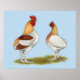 A imundície nas galinhas é causada por uma mutação na qual o "nariz da papa", de onde crescem as penas da cauda, está faltando. Estes são bantams de jogos de estilo vermelho.