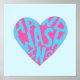 Esta design apresenta uma frase encorajando alguém a lavar as mãos em um coração azul e rosa.