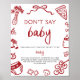 🍕 👶 Lado Desenhado Italiano Não Diga Chá de fraldas Bebê Sinal ✨ Adicione uma fatia de diversão ao seu chá com este sinal de jogo Don't Say Baby, estilizado com pizza rustica desenhada à mão, massa e rabisco Italiano. Os convidados adorarão o desafio de se calar enquanto desfrutam das vibrações calorosas inspiradas na sua Ciao Bambino ou do tema Parto Especial. Com sua paleta vermelha e branca divertida e design neutra do ponto de vista do gênero, este sinal é perfeito para qualquer mamma a ser. Use-o como uma peça central na sua mesa de jogos ou emparelhe-o com nossos convites, placas, guardanapos, balões, e etiquetas a favor de uma celebração coordenada pela bellissimo. ❤️ 🎉 🍷