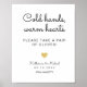 Um elegante sinal preto e branco de "Mãos frias corações quentes - Por favor, pegue um par de luvas" para luvas de inverno favoritos de casamento para seus convidados. A design também apresenta um pequeno coração de folha de ouro falso. Personalize substituindo o texto de amostra.