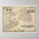 Póster Mapa antigo da Nova Escócia e Terra Nova
