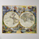 Poster Mapa antigo do mundo em dois hemisférios 1683