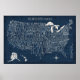 Poster Mapa Azul EUA com Letra Mão