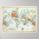 Mapa Comercial Antiquado do Mundo desde 1891. Mostrando o Império Britânico em Vermelho.