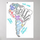 Colorida, mapa original da América do Sul com foco nos países de língua espanhola. Excelente para professores espanhóis!
