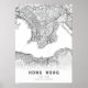 Capturar a essência da icônica linha do horizonte e da cultura vibrante de Hong Kong neste mapa detalhado e artístico da cidade.