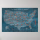 © Michael Mullan / Wild Apple. Mapa ilustrado dos EUA em azul branco vermelho com estados e capitais