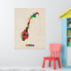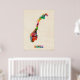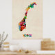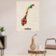 Um mapa de aquarelas da Noruega sobre um fundo de colheita