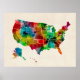 Póster Mapa de Aquarela dos Estados Unidos