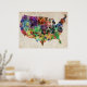 Póster Mapa de Aquarela dos EUA