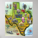 Póster Mapa de Cartoons do Texas