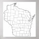 Poster Mapa de Contornos do Vazio dos condados do Wiscons