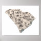 Um mapa de ilustração antigo do estado da Carolina do Sul.