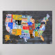 Póster Mapa de Placas de Licença dos EUA em Planks de Mad