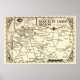 A reprodução de um postal de vintage mostra um mapa da Região dos Lagos Rangeley.