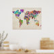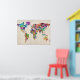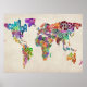 Um mapa de texto tipográfico do mundo em estilo aquoso urbano. Cada país é representado pelo seu nome, que é moldado para ajustado na área geograficamente correta. Praticamente todos os países estão representados esperam algumas das ilhas mais pequenas do Pacífico e Caribe.