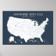 Poster Mapa de Viagem EUA para Casais para locais de pino