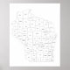 Poster Mapa de Wisconsin de condados do estado com nomes