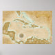 Vintage Caribe Mapa à vela do Golfo do México e do Caribe.