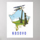 O mapa do Kosovo em uma bela vintage ou estilo retrô.