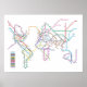 Um mapa do mundo ao estilo de um metro / metrô / metrô / metrô / metrô, com grandes cidades de todos os continentes como estações.