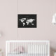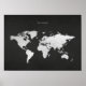 O Mundo. Um Mapa do Mundo Prateado recortado sobre um fundo de concreto preto. Inclui todas as fronteiras nacionais.