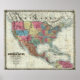 Póster Mapa Dos Estados Unidos, Canadá, México
