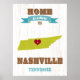 Poster Mapa Estadual do Tennessee Art- Love NashVille Art