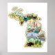 Poster Mapa Ilustrado do Estado do Lago excelente Michiga