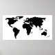 Simples gráfico negro sólido de um mapa de todo o mundo que inclui os continentes da ásia, américa, áfrica, europa etc. Personalize e escolha sua própria cor de fundo. Imagem disponível em vários presentes e produtos.