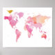 Poster Mapa Mundial De Aquarelas Rosa E Dourada