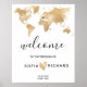Poster Mapa Mundial de Destino de Casamento Dourado Coraç