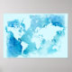 Mapa mundial em blues de aquarela. | © e ® Bigstock® - Todos os direitos reservados.