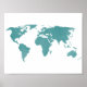 Poster Mapa Mundial Russo de Turquesa Profunda