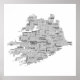 Póster Mapa tipográfico negro de Munster, Irlanda