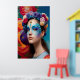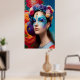 Uma imagem de uma senhora com maquiagem azul floral. Este é um trabalho de arte gerado por IA com um tema floral.