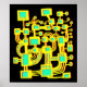 Uma rede abstrato colorida como uma estrutura que talvez lembre um circuito ou mapa de algum tipo. Digitalmente pintado em amarelo e turquesa com um deslocamento vermelho que lhe dá um visual estêncil offset. O design foi parcialmente criado usando os efeitos digitais de tinta a óleo, o que lhe dá um atraente aspecto pintado à mão com estêncil.