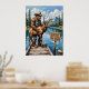 Este trabalho de arte imaginativo retrata o Pé Grande, um gigante gentil em um chapéu de vaqueiro e colete, parado em uma doca de madeira por um lago tranquilo. Ele está cuidadosamente carregando um alce jovem. O fundo apresenta árvores verdes e montanhas nebulosas sob um céu macio. Um letreiro de madeira metida na doca diz brincalhão, "BIGFOT TAMBÉM NÃO ACREDITA EM VOCÊ". A escova grossa e expressiva cria uma qualidade sonhadora, enfatizando a delicadeza e um pouco surreal desse momento lacrado.
