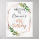 Marble Rosa de Folhagem Dourada de Aniversário de Boas-vindas Poster Folhagem de Boas-vindas, faux rosa gold line art e marble 80 de sinal de boas-vindas. Este simples e elegante design apresenta uma caligrafia de pincel em folha de ouro falso rosa que não pode ser alterada e alguma folhagem verde. O fundo é uma imagem de mármore branco.