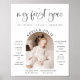 Este conselho de marco de primeiro aniversário apresenta uma fonte divertida escrita à mão e um design moderno minimalista com uma bela foto arquivada no meio. Este ano, um poster de destaque é perfeito para o seu filho ou festa de aniversário. Todas as cores são editáveis! Clique no botão azul 'editar usando a ferramenta design na seção de personalização para usar o editor de cheio.