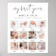 Este conselho de primeiro aniversário apresenta uma fonte escondido e moderna e manuscrita, com doze slots de fotos para honrar o crescimento do seu pequeno. Este ano, um poster de destaque é perfeito para o seu filho ou festa de aniversário. Todas as cores são editáveis! Clique no botão azul 'editar usando a ferramenta design na seção de personalização para usar o editor de cheio.