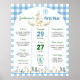 Capture os destaques do seu primeiro ano com nosso Poster do Partido primeiro aniversario Goose! Esta design divertida e sincera mostra um ganso adorável, tons azuis e toques florais, fazer a adição perfeita à celebração de aniversário do seu filho. Preenchido com seções personalizáveis para comidas favoritas, primeiras palavras e outras memórias de precioso, este poster é uma peça central exclusiva do partido e uma manutenção tesourada.
