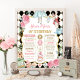 Cartaz de aniversário preto, rosa e dourado adorável com elementos caprichosos de Alice no País das Maravilhas